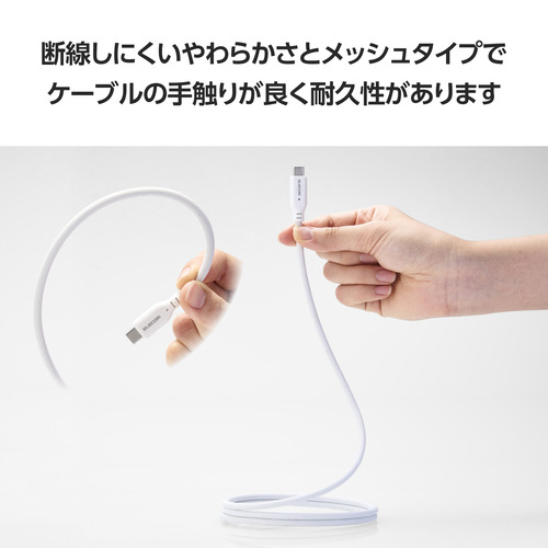 ●断線しにくいやわらか+メッシュタイプ。ケーブル表面にメッシュ加工を施すことで、やわらかさとナイロンメッシュの耐久性を持ち合わせた手触りの良いケーブルです。