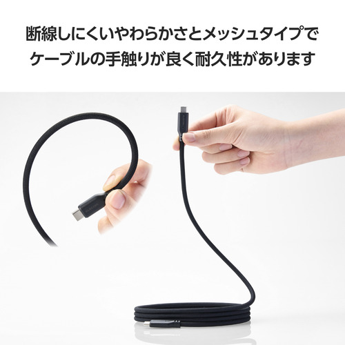 ●断線しにくいやわらか+メッシュタイプ。ケーブル表面にメッシュ加工を施すことで、やわらかさとナイロンメッシュの耐久性を持ち合わせた手触りの良いケーブルです。