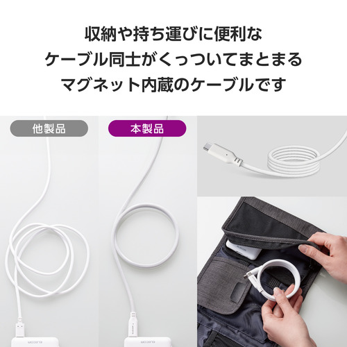 ●マグネット内蔵のケーブルできれいにまとまるUSB Type-C(TM)(USB2.0)ケーブルです。
