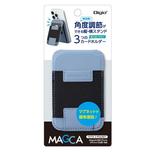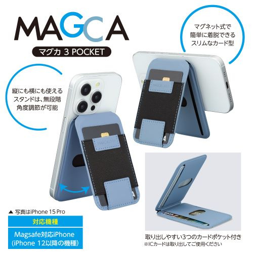 ナカバヤシ SMA-H009BL マグカ 3ポケット カードポケット付きスタンド iPhone12以降対応 ブルー