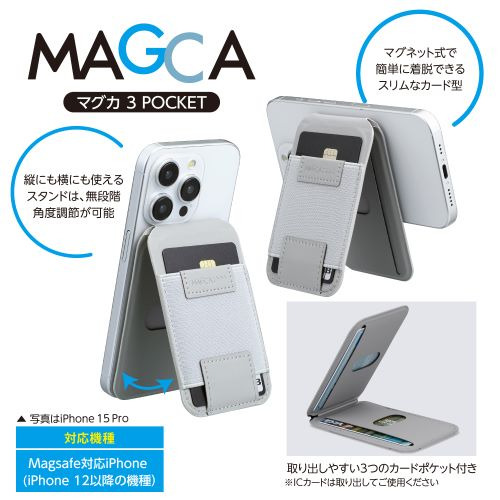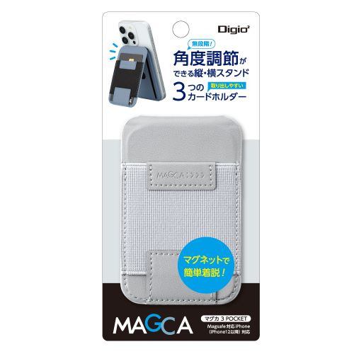 ナカバヤシ SMA-H009GY マグカ 3ポケット カードポケット付きスタンド iPhone12以降対応 グレー