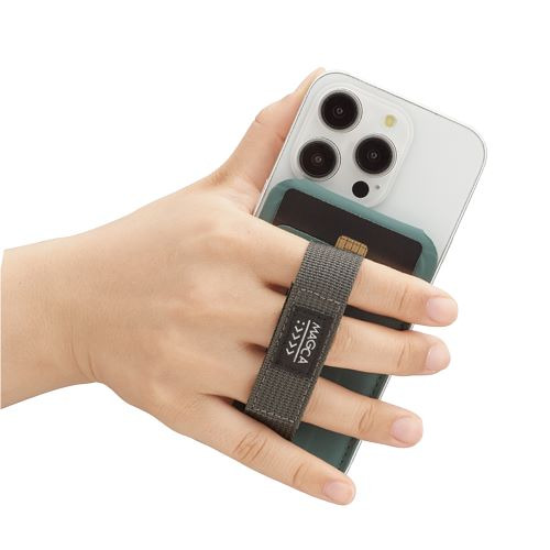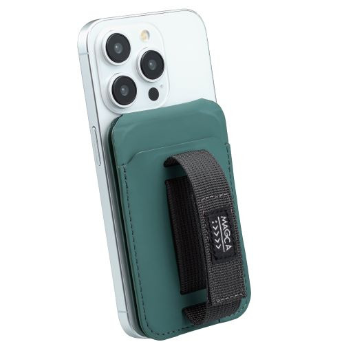 ナカバヤシ SMA-H011GN マグカ with ハンドベルト ハンドベルト付きカードポケット iPhone12以降対応 グリーン