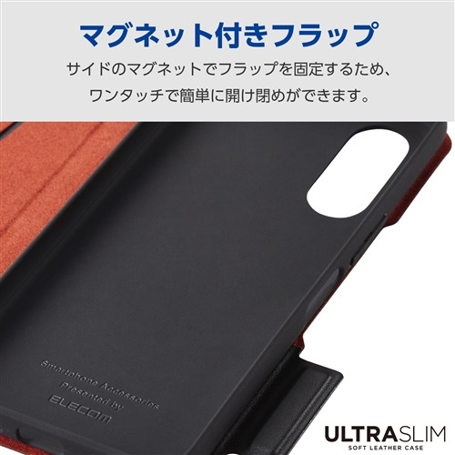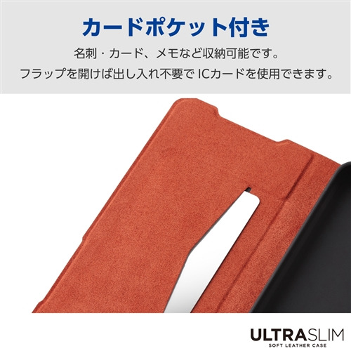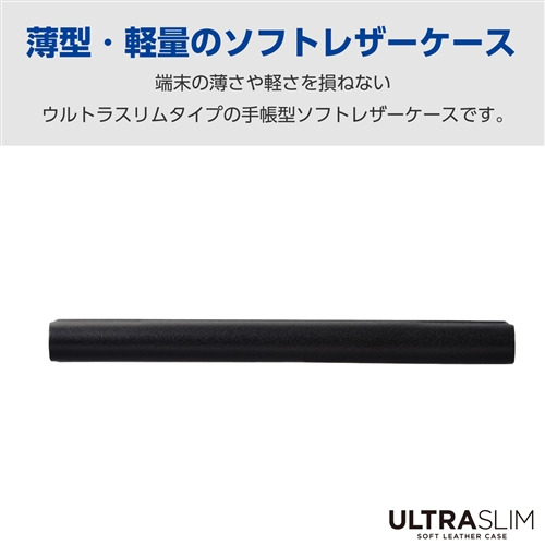 ●端末の薄さや軽さを損ねない、薄型・超軽量なウルトラスリムタイプのソフトレザーケース(手帳型)です。