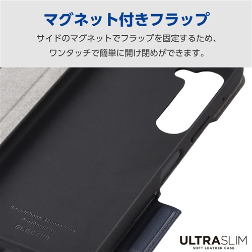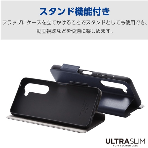 ●端末の薄さや軽さを損ねない、薄型・超軽量なウルトラスリムタイプのソフトレザーケース(手帳型)です。
