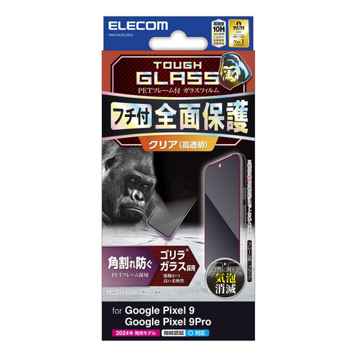 エレコム PM-P242FLGFO Google Pixel 9/9 Pro ガラスフィルム フレーム付き ゴリラ