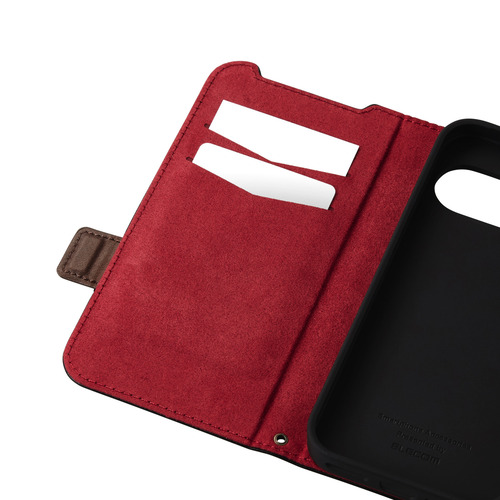 ●フラップの内側に、メモやカードなどが収納できるカードポケットが2つ付いています。カードを出し入れすることなく、そのままICカードを使用可能です。