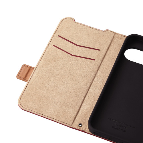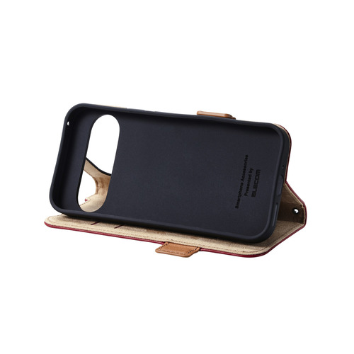 エレコム PM-P242PLFYRD Google Pixel 9/9 Pro ソフトレザーケース 磁石付 耐衝撃 ステッチ レッド