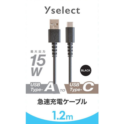 Yselect YSTC12MK USB-A to USB-C ケーブル ヤマダオリジナル 1.2 m ブラック