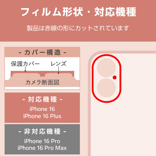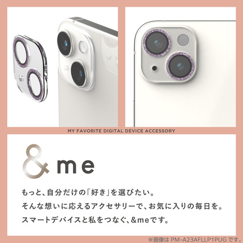 エレコム PM-A24AFLLP5PUG iPhone 16 / 16 Plus &me カメラ レンズカバー ガラス グリッター