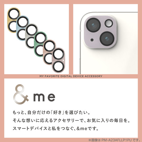 エレコム PM-A24AFLLP6PU iPhone 16 / 16 Plus &me カメラレンズカバー ガラス 全面グリッター