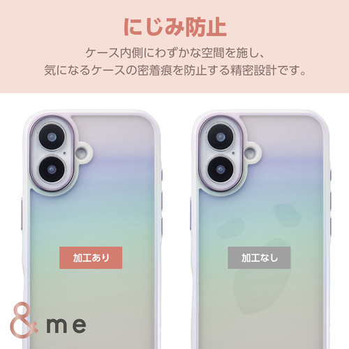 ●オーロラのような輝きが美しい、ポリカーボネートとTPU(熱可塑性ポリウレタン)の2素材を組み合わせた、&meシリーズのハイブリッドケースです。
