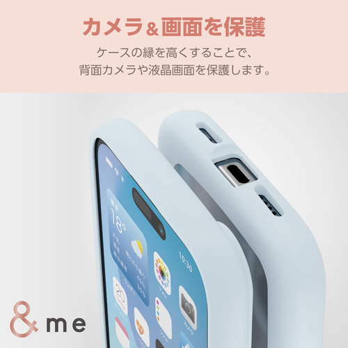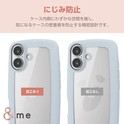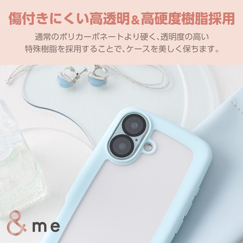 エレコム PM-A24AHVPBU iPhone 16 &me ハイブリッドケース ぷっくりフレーム