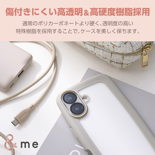 エレコム PM-A24AHVPGB iPhone 16 &me ハイブリッドケース ぷっくりフレーム