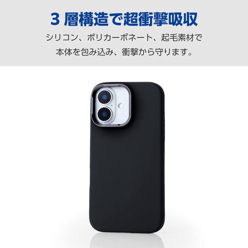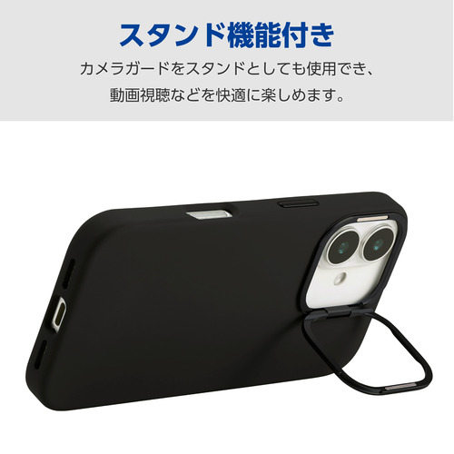 エレコム PM-A24AHVSCSTBK iPhone 16 ハイブリッドケース シリコン MAGKEEP スタンド
