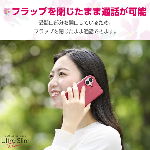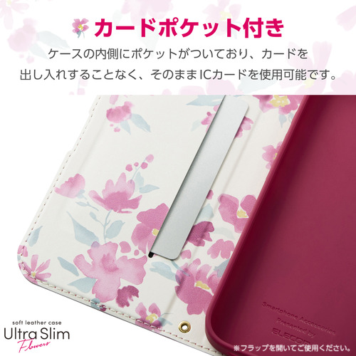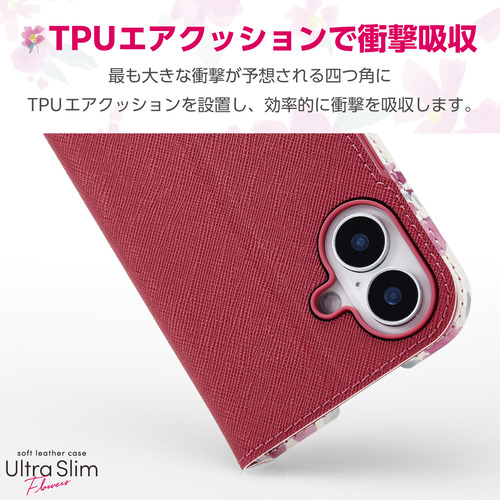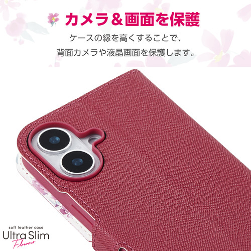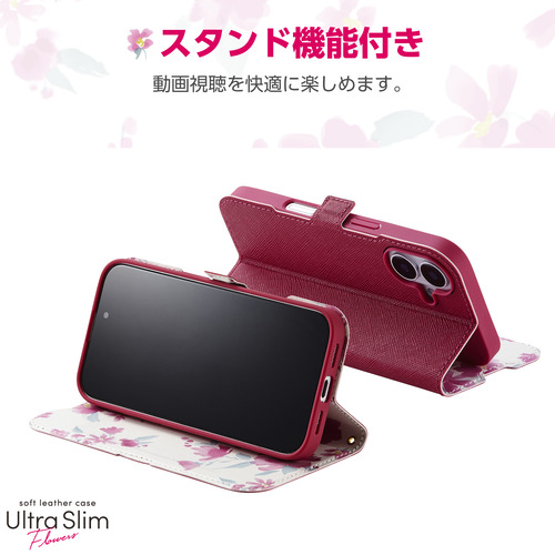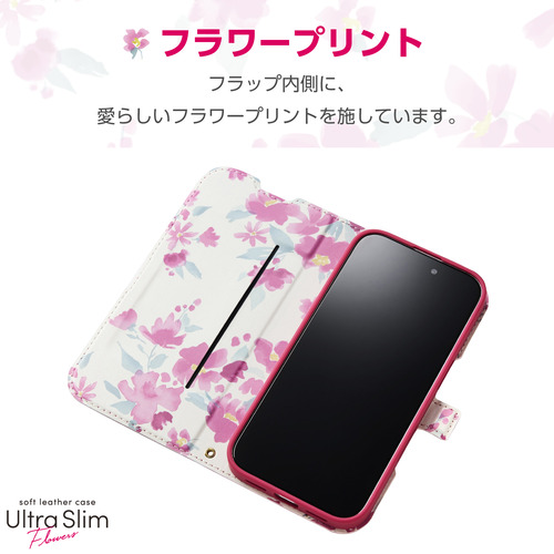 エレコム PM-A24APLFUJPND iPhone 16 ソフトレザーケース 薄型 磁石付 フラワーズ