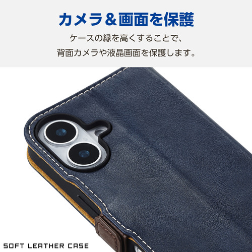 エレコム PM-A24APLFYNV iPhone 16 ソフトレザーケース 磁石付 耐衝撃 ステッチ