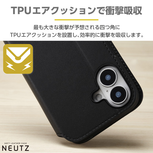 エレコム PM-A24APLFY2BK iPhone 16 NEUTZ ソフトレザーケース 磁石付