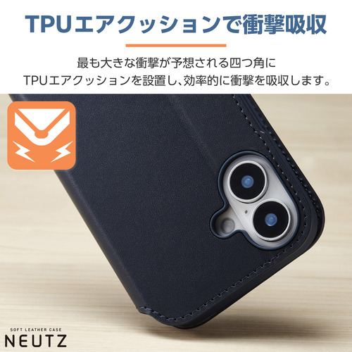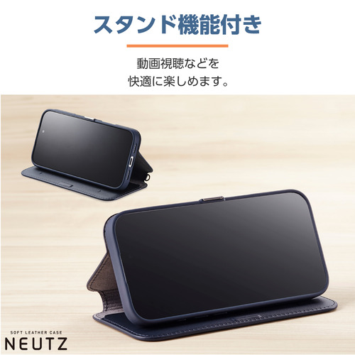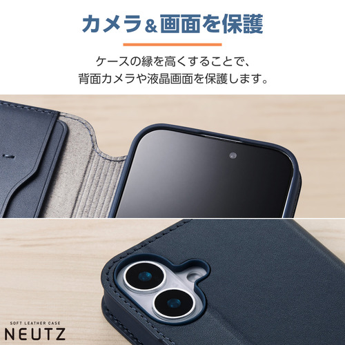 エレコム PM-A24APLFY2NV iPhone 16 NEUTZ ソフトレザーケース 磁石付