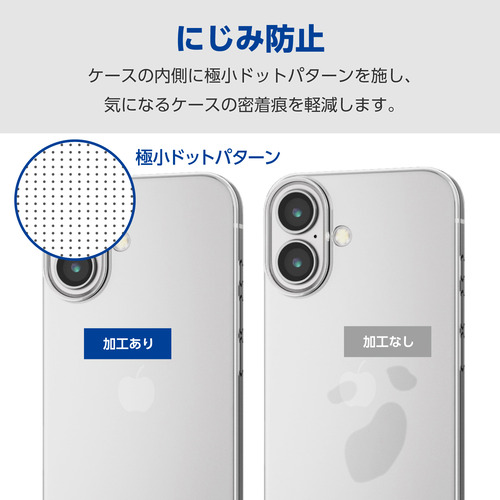 ●ケースと端末の貼り付きを防止するため、ケース内側にマイクロドット加工を施しています。