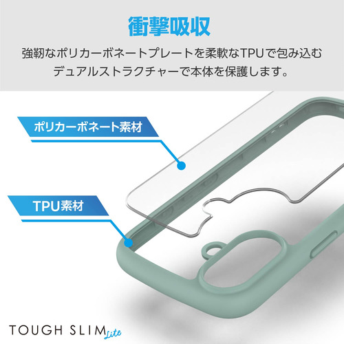 エレコム PM-A24ATSLFCGN iPhone 16 TOUGH SLIM LITE ハイブリッドケース フレームカラー