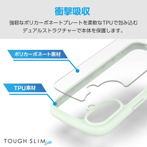エレコム PM-A24ATSLFCGNL iPhone 16 TOUGH SLIM LITE ハイブリッドケース フレームカラー