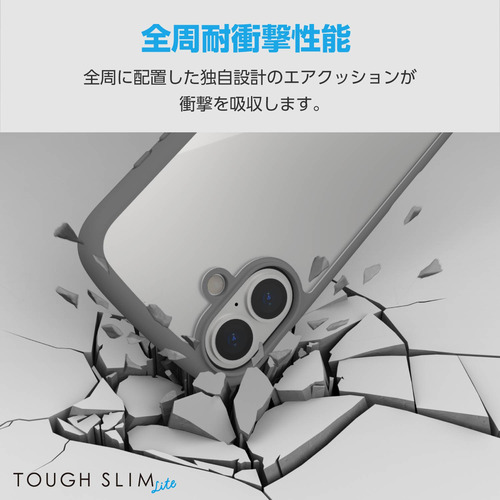 エレコム PM-A24ATSLFCGY iPhone 16 TOUGH SLIM LITE ハイブリッドケース フレームカラー