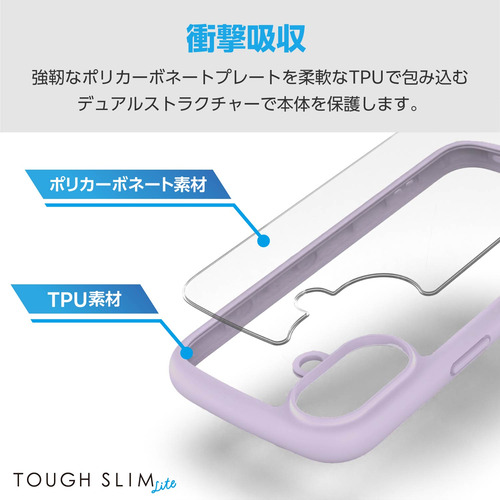 エレコム PM-A24ATSLFCPU iPhone 16 TOUGH SLIM LITE ハイブリッドケース フレームカラー