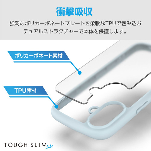 エレコム PM-A24ATSLFCSBU iPhone 16 TOUGH SLIM LITE ハイブリッドケース シルキークリア