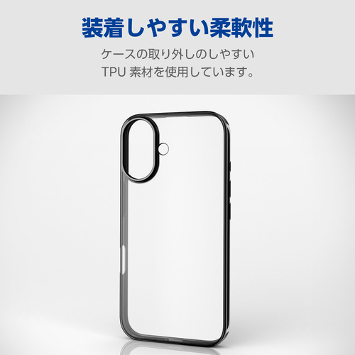 エレコム PM-A24AUCTMBK iPhone 16 ソフトケース サイドメッキ