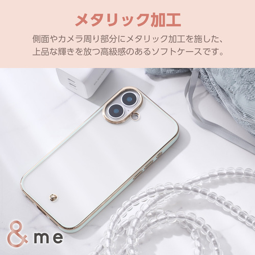 エレコム PM-A24AUCTMLGN iPhone 16 &me ソフトケース メタリックライン