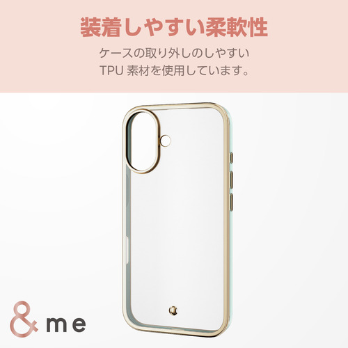 ●強じんな耐久性としなやかな弾力性をあわせ持つ、TPU(熱可塑性ポリウレタン)素材を使用しています。メタリックラインが上品な輝きを放つ&meシリーズのソフトケースです。