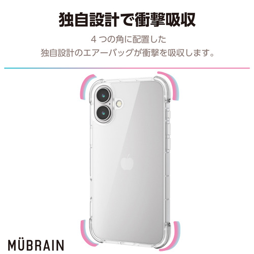 エレコム PM-A24BHVAIRCR iPhone 16 Plus MUBRAIN ハイブリッドケース エアバッグ