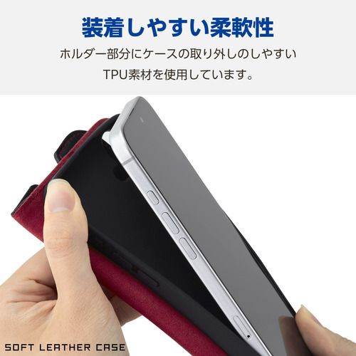 ●便利な機能を搭載した、革のようなやわらかな風合いのソフトレザーケース(手帳型)です。