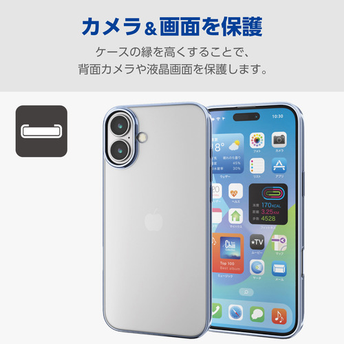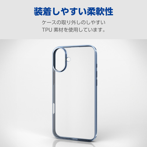 エレコム PM-A24BUCTMBU iPhone 16 Plus ソフトケース サイドメッキ