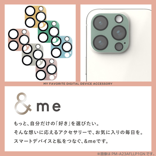 ●端末のカメラレンズ周りを傷や汚れから守る、リアルガラスを採用した&meシリーズの全面グリッター仕様カメラ保護カバーです。