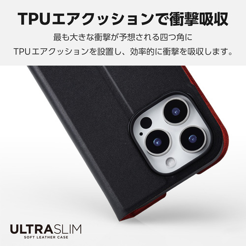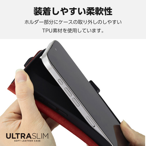 ●端末の薄さや軽さを損ねない、薄型・超軽量なウルトラスリムタイプのソフトレザーケース(手帳型)です。