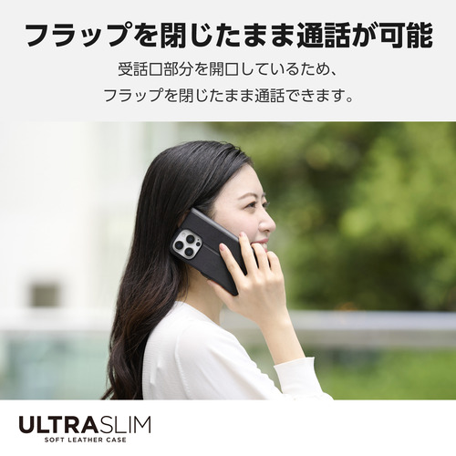エレコム PM-A24CPLFUBK iPhone 16 Pro ソフトレザーケース 薄型 磁石付