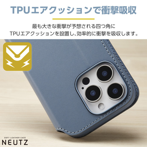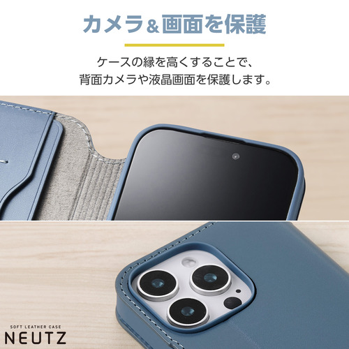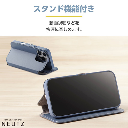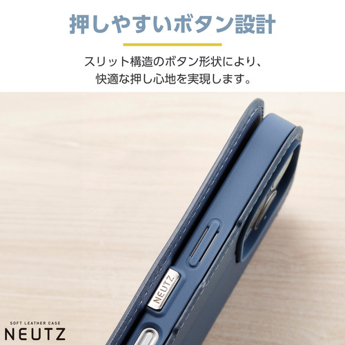 エレコム PM-A24CPLFY2BU iPhone 16 Pro NEUTZ ソフトレザーケース 磁石付