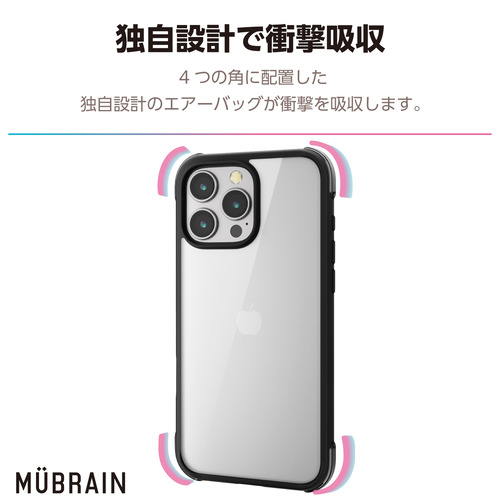 ●4つの角に配置した独自設計のエアーバッグが衝撃を吸収するMUBRAIN(ムーブレイン)シリーズのハイブリッドケースです。