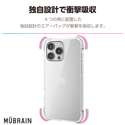 ●4つの角に配置した独自設計のエアーバッグが衝撃を吸収するMUBRAIN(ムーブレイン)シリーズのハイブリッドケースです。