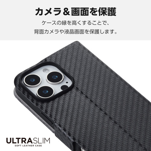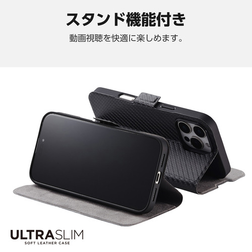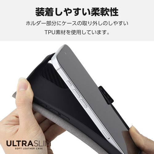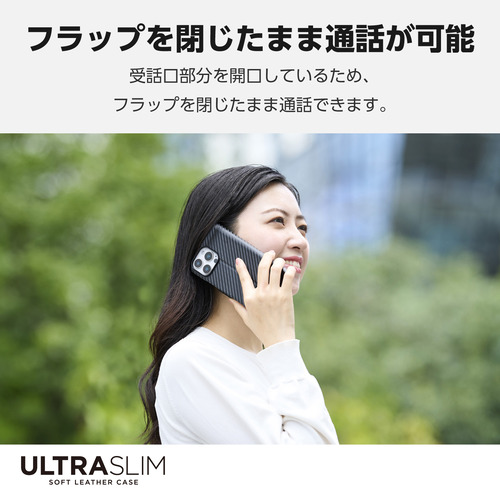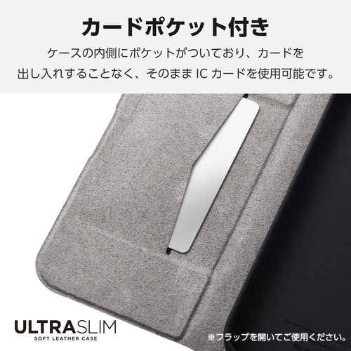 ●端末の薄さや軽さを損ねない、薄型・超軽量なウルトラスリムタイプのソフトレザーケース(手帳型)です。