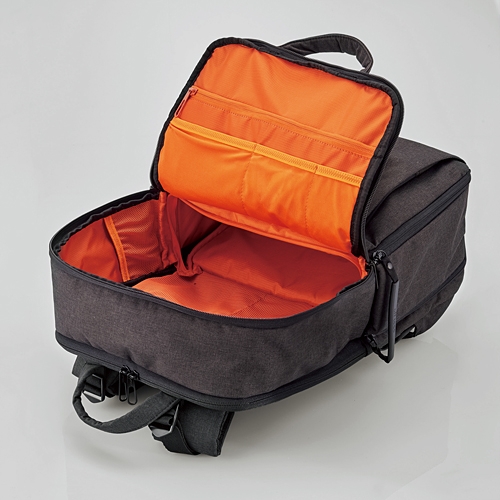 ポケット数:上部収納スペース(内側:伸縮ポケット×3、メッシュポケット×3、ファスナーポケット×2)、カメラ収納スペース×1、前面ポケット×2、背面ポケット×2、底面ポケット×1、背面PC収納スペース×1(内側:書類ポケット×1)、付属ポーチ部ポケット×2