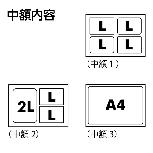 [中額2]Lサイズの写真を2枚、2Lサイズの写真を1枚飾れます。