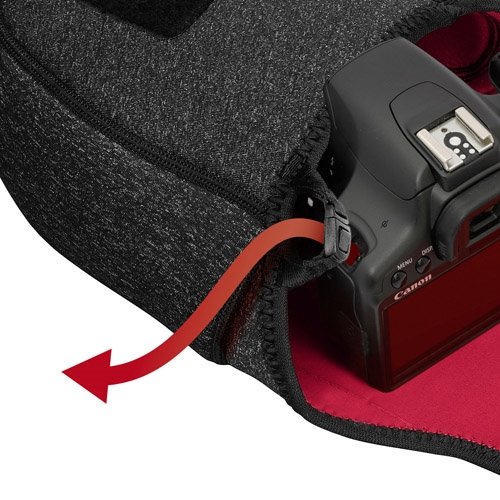 ●伸縮クッションが一眼カメラにぴったりフィット。カバンの中でかさばらないスリムなカメラケース。