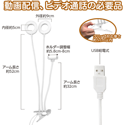 FUGU INNOVATIONS JAPAN FG-SELFL02-WH 2ライト自撮りスマホホルダー ホワイト