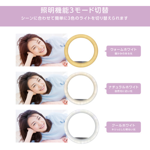 「動画配信のクオリティを上げたい」「Web通話時の印象を良くしたい」という方におすすめなリングライトです。
