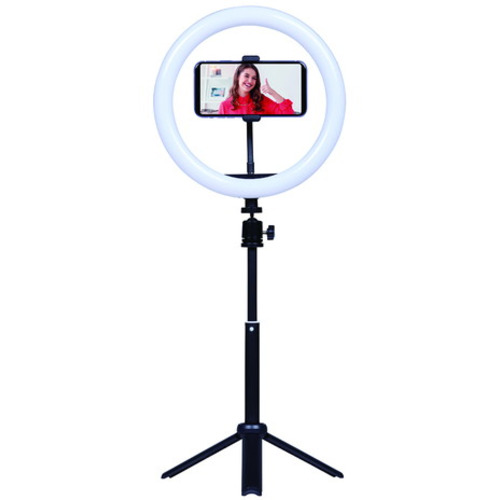 大きな10インチ型のLEDライトはスマートフォンをリング内にセットでき、光が均一にまわり、明るくキレイに写すことができます。