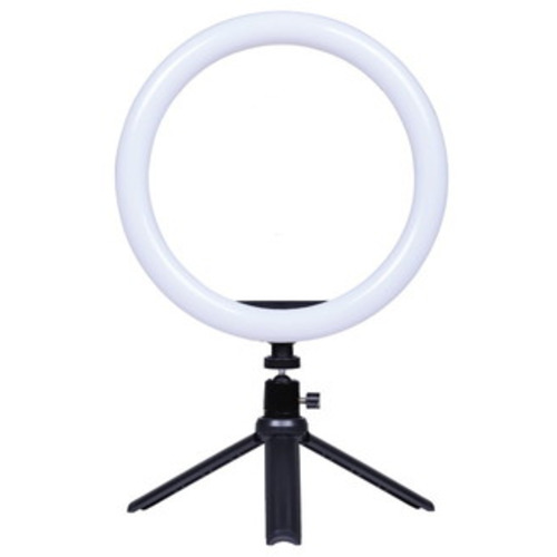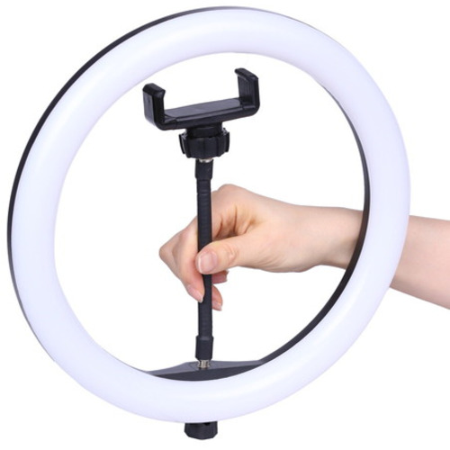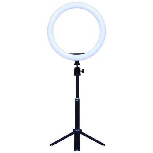 コンパクトな三脚とスマートフォンホルダーが付属し、手軽に使えるLEDリングライト。