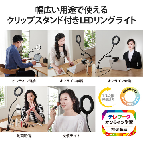 ●室内でも明るく撮れて好印象に!動画配信・オンライン会議・オンライン学習・オンライン面接などに最適なクリップタイプのリングライトです。