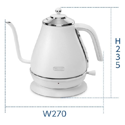 ●注ぎやすさとデザインにこだわった、デロンギ初の細口タイプ。デロンギらしい洗練されたデザインと仕上がりの、1L容量の電気カフェケトル